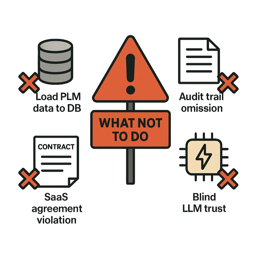 Today, many PLM software vendors are adding AI features to their platforms. While functions like part search, document summarization, or metadata classification are useful, they often fall short of meeting the needs of engineering teams. For more complex scenarios such as real-time BOM comparison, CAD–ERP–MES integration, or IP risk analysis, an additional layer is required.