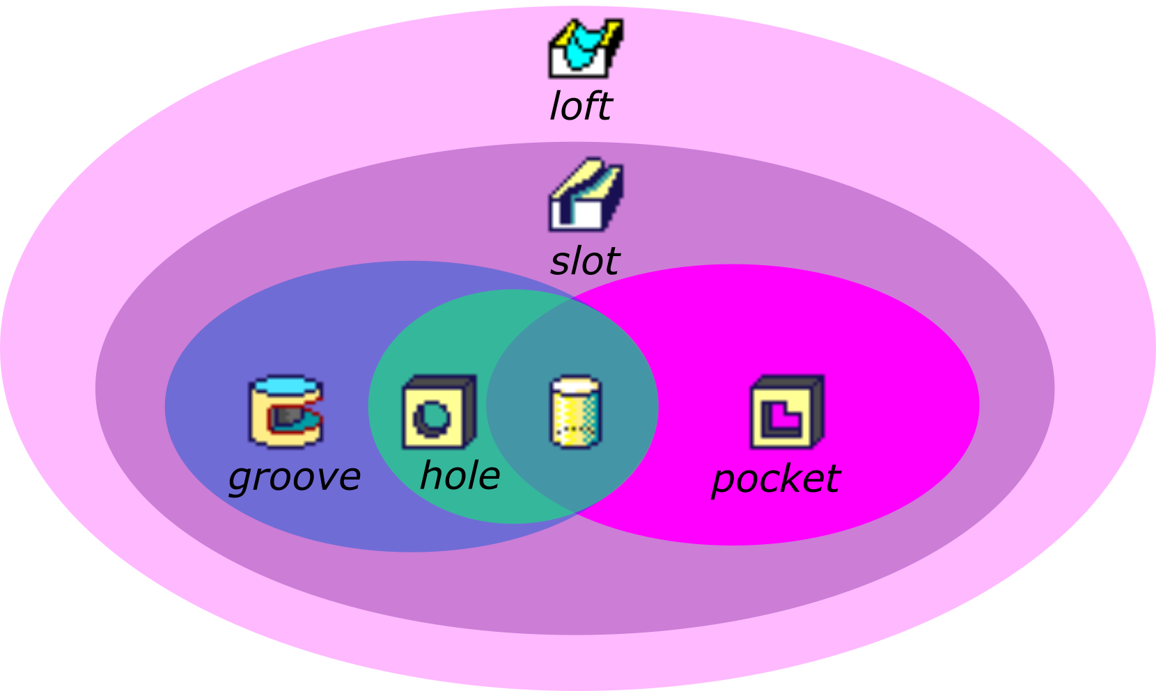 Groove or Slot would give you more flexibility than you need, which can actually become a problem during revisions.You could use them, but you don’t need to, and they introduce unnecessary risk.