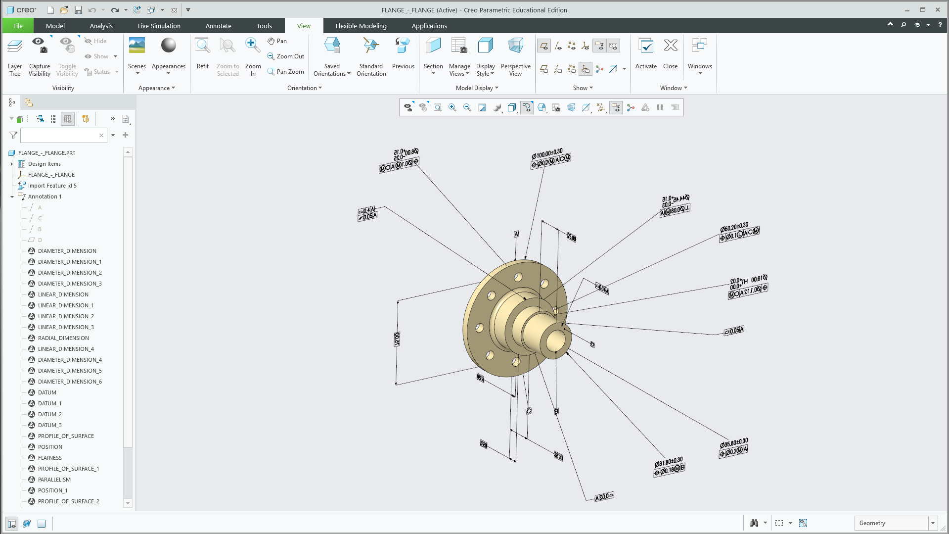 Fig. 1: Flange Front View with Model-Based Definition (MBD)