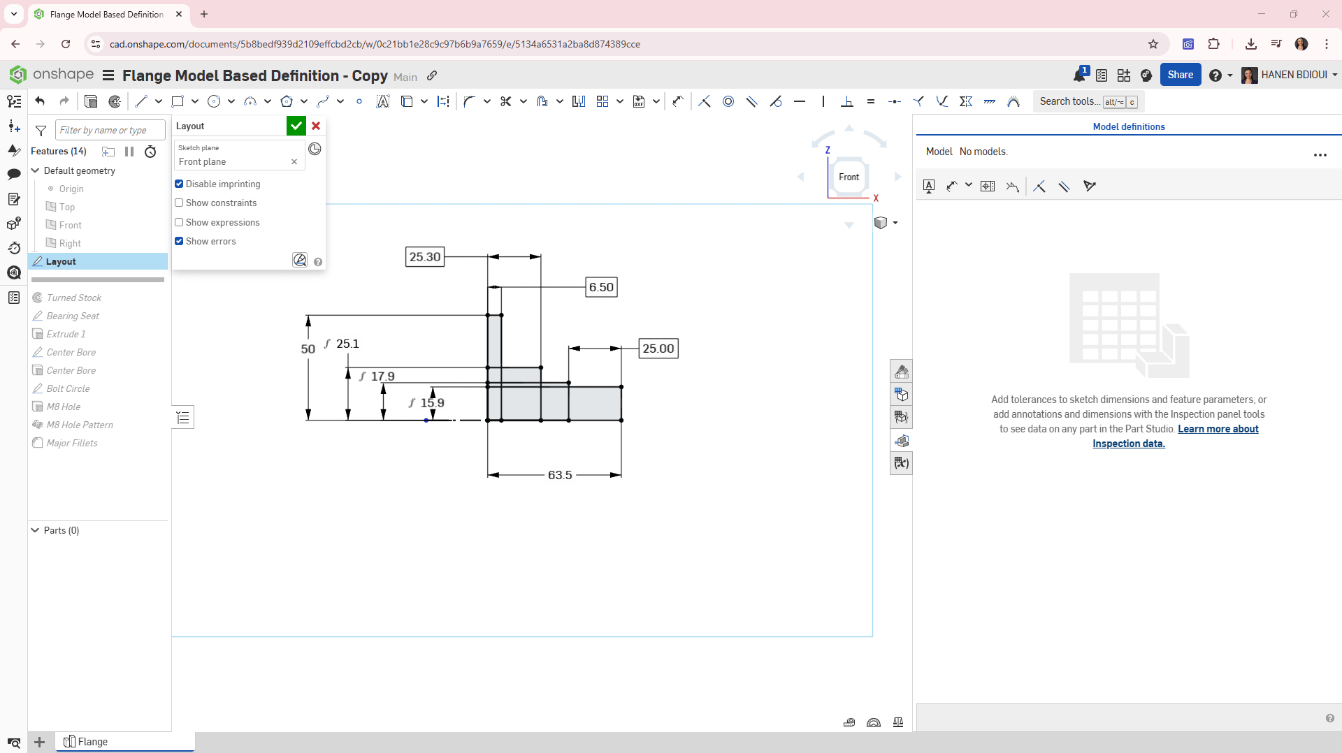 Fig. 5:  Editing MBD data in Onshape with automatic Inspection Table updates
