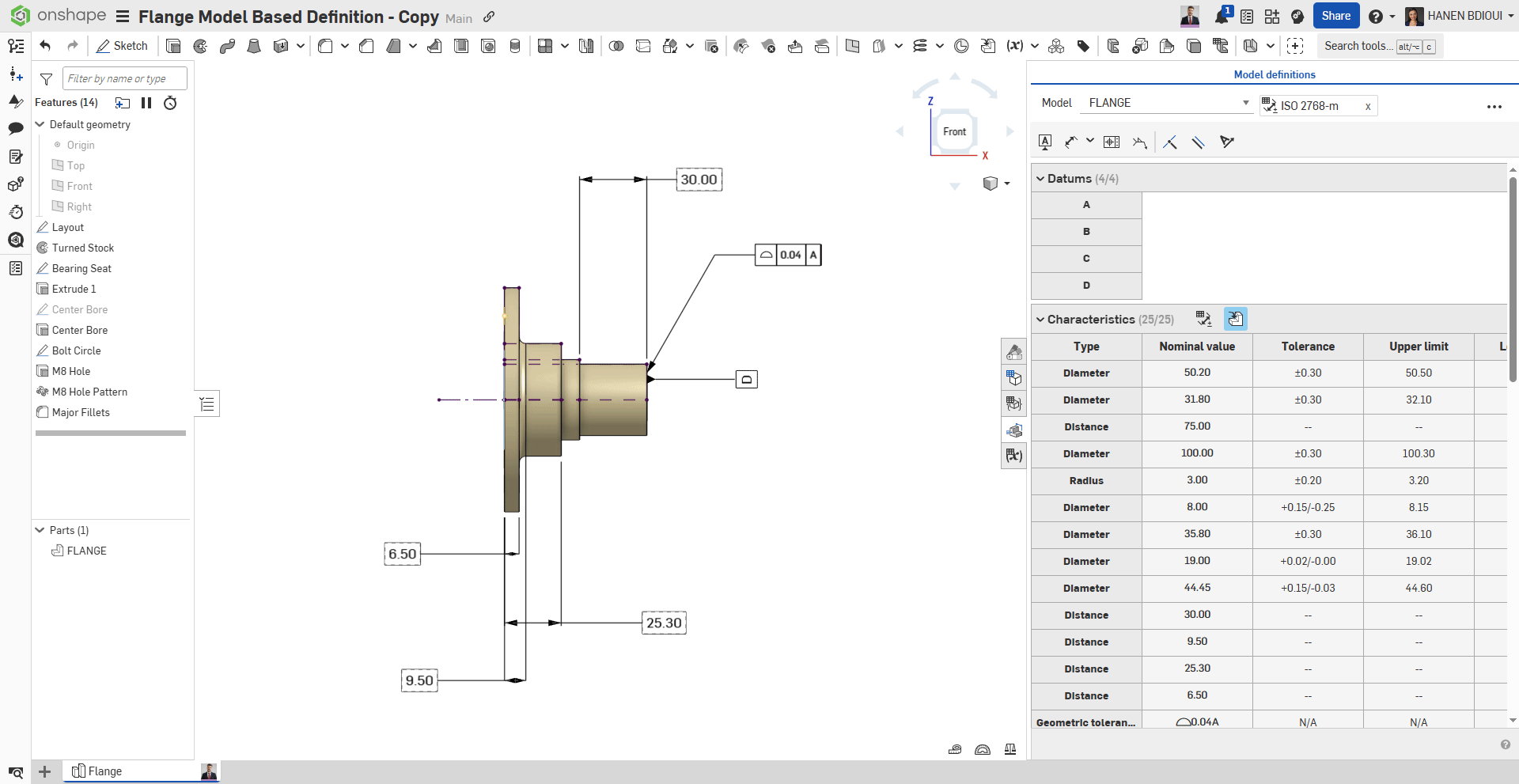 In this example, the team is defining datums for a flange part to ensure proper machining and alignment during production.