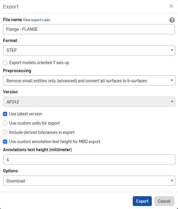 Fig. 6: STEP AP242 Export Dialog with PMI Enabled