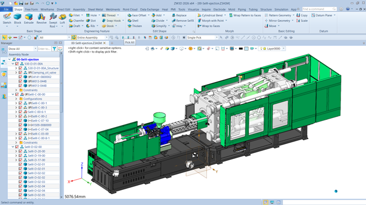 ZW3D offers a comprehensive and fully integrated solution for machine design, covering every stage from conceptual modeling to final validation. Its core capabilities include Part Design and Part Drawing for accurate 3D modeling and detailed 2D documentation. The Part Configuration tools enhance efficiency by managing parametric variations and product families with ease.